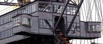 einzigartiges Ensemble aus gigantischen Tagebaugroßgeräten auf einer